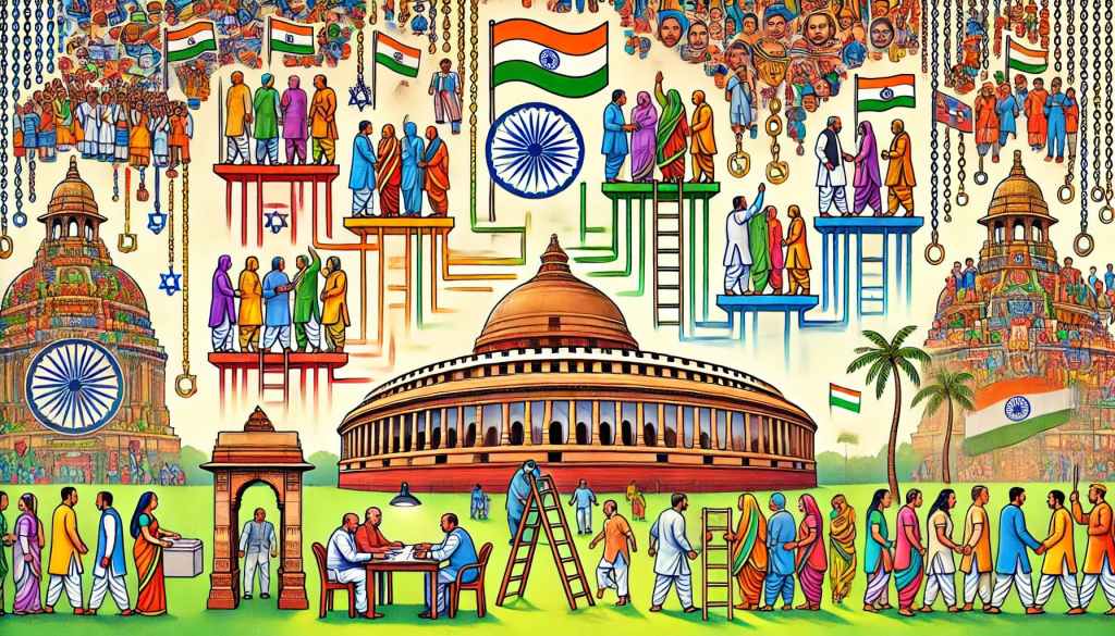 Caste, rooted in birth-based inequality, serves as a divisive factor within Indian politics, often superseding ideological disparities among political parties. Electoral campaigns frequently align along caste lines, and instances of violence during elections often stem from caste-based tensions. Consequently, politics in India has become heavily influenced by caste affiliations, with castes becoming increasingly politicized entities. Yet, the process of democratization holds promise in ushering in leaders from marginalized communities, indicating a desire among the populace for inclusive development and representation.